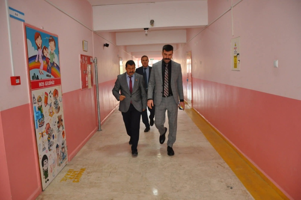 İlçe Kaymakamımız Sayın Selçuk YOSUNKAYA, İlçe Milli Eğitim Müdürümüz Hüseyin EROĞLU okulumuzu ziyaret ederek idareci ve öğretmenlerimizle bir araya geldiler. Sınıflara misafir olup; eğitim öğretim faaliyetleri ve okulumuz hakkında bilgiler aldılar.